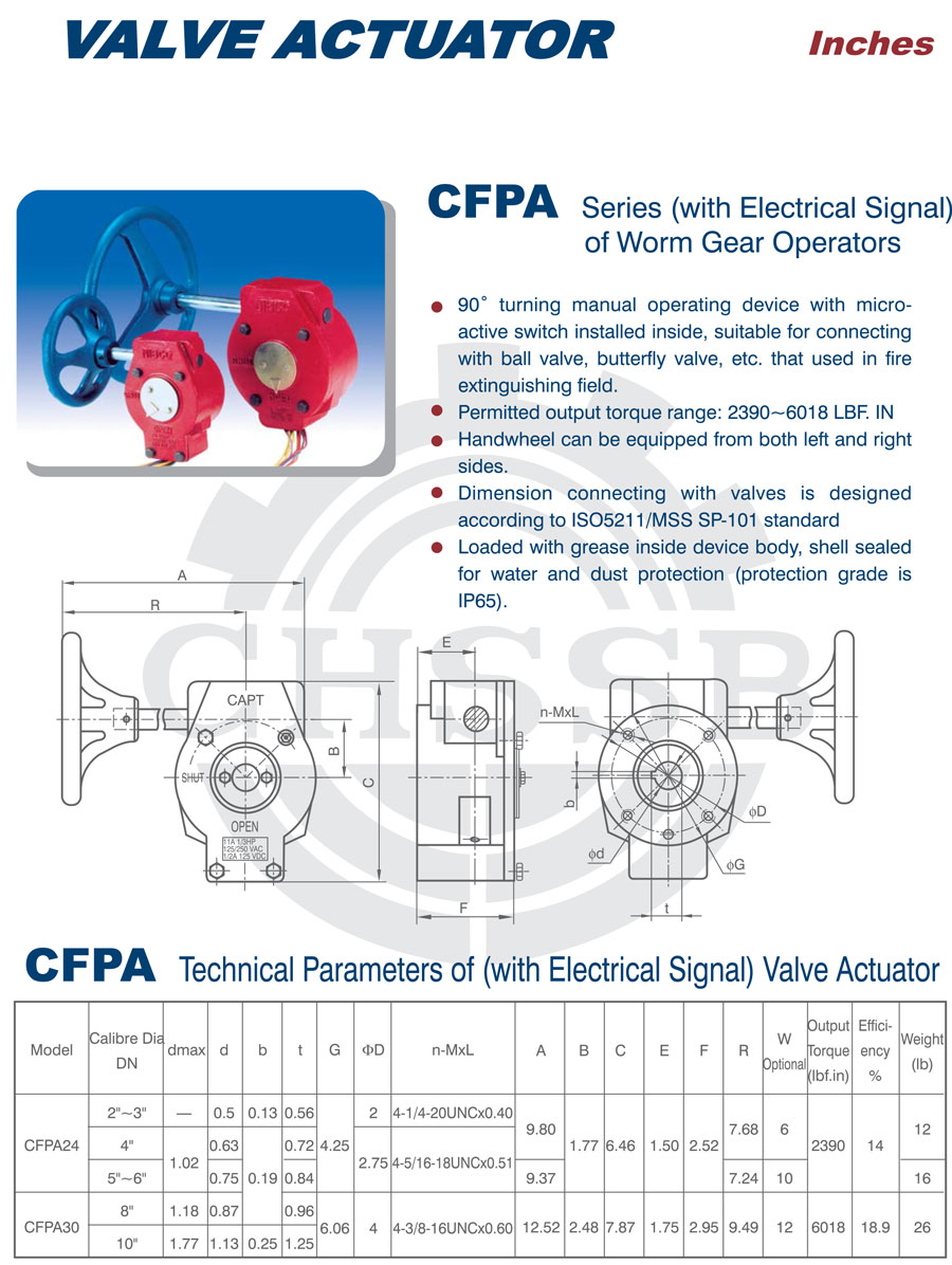 CFP系列消防型渦輪驅(qū)動(dòng)器:該產(chǎn)品是一種帶有微動(dòng)開關(guān)的90°回轉(zhuǎn)型驅(qū)動(dòng)裝置,適用于球閥、蝶閥、旋塞閥